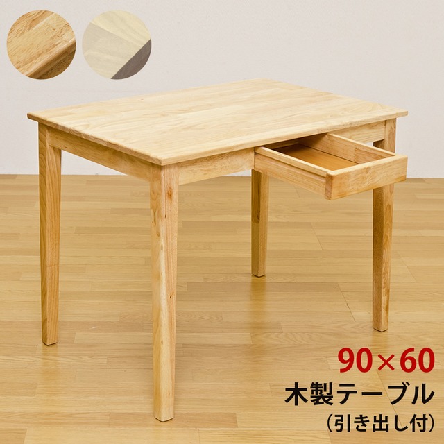 木製テーブル 90×60cmです 天然木のデスクです 引出し1杯付き(内寸:約 幅23.5×奥行34×高さ5.5cm) A4サイズが収まります ストッパー付きのため、引き出しても抜け落ちません 脚を取り付けるだけの組立です ナチュラル(NA)、ホワイトウォッシュ(WW)の2色展開です ■ナチュラルは木目が特徴です。木目は一つ一つ異なります ■ホワイトウォッシュは下地がうっすら見えます。真っ白のベタ塗りではありません 商品詳細 サイズ・容量 幅900×奥行600×高さ710mm(梱包サイズ:幅950×奥行700×高さ120mm) 天板厚:約20mm 本体重量:13.5kg(梱包重量:15.6kg) 組立式(約15分/付属の工具にて組立)1個口 規格 天然木(ラバーウッド)、ラッカー塗装 原産国:ベトナム umt9060