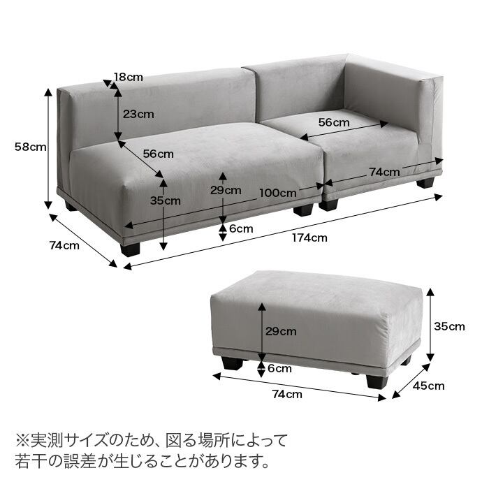 【2人掛けソファ】幅100cm×奥行74cm×高さ58cm(座面高35cm)
