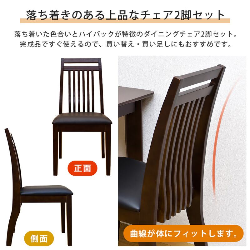 シンプルながらモダンなデザインのダイニングチェア2脚入りです。