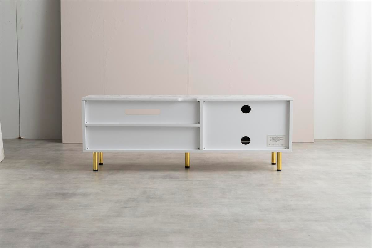 天板の大理石柄とゴールドのあしらいが特徴の『Camila(カミラ)』シリーズの引き出し付きテレビボード