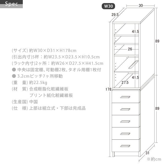 【商品サイズ】約 横30×奥行31×高さ178cm