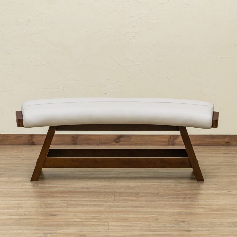 テーブルを囲むような曲線に仕上げられたダイニングベンチです