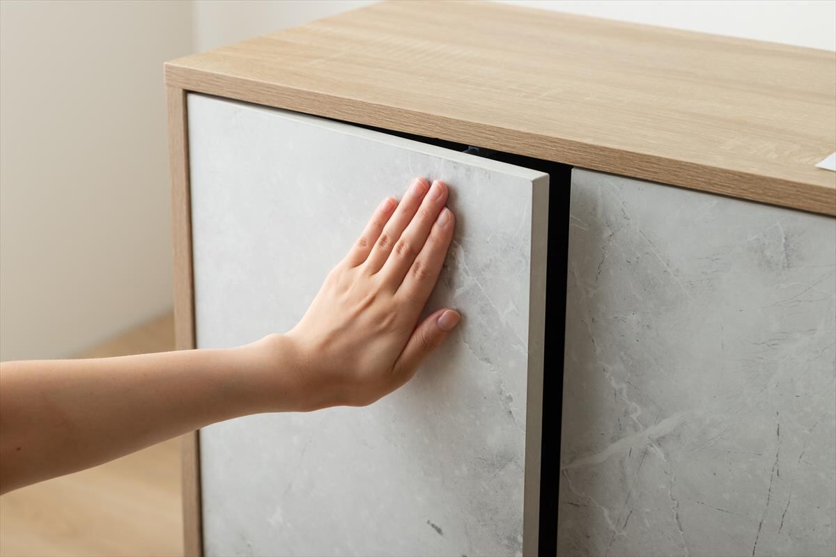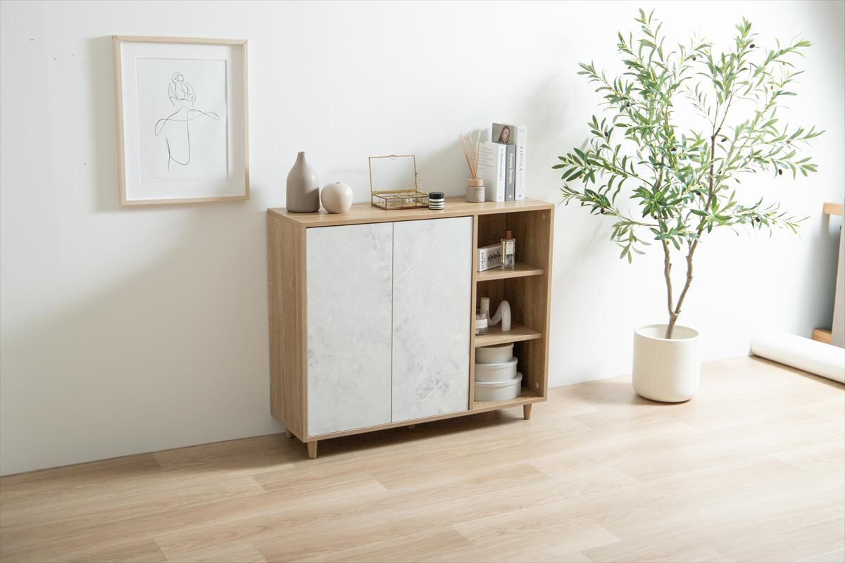 美しい木目×ストーン柄のバイカラーデザインがおしゃれな『Tas(タシュ)』シリーズのキャビネット