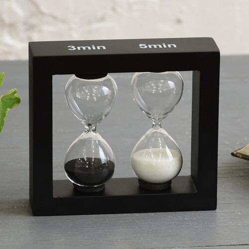 美しいフォルムが特徴。時の流れを砂と共に感じます。3分、5分計