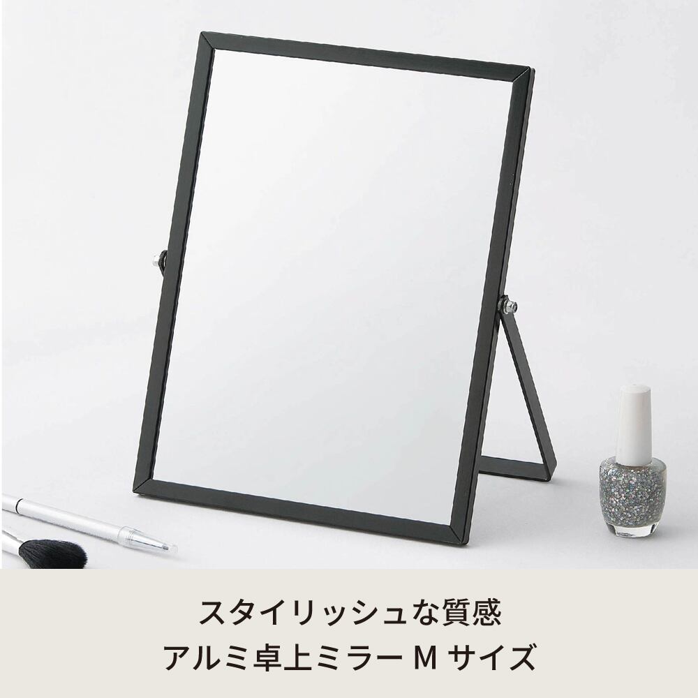 【Mサイズ】清潔感のあるアルミフレーム卓上ミラー 鏡 かがみ カガミ メイク