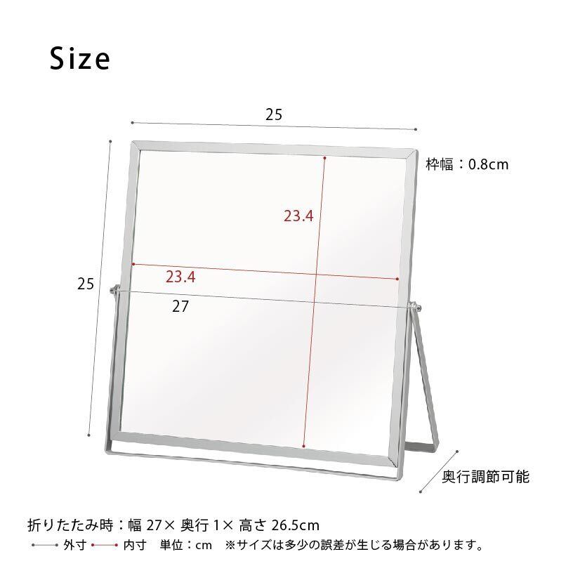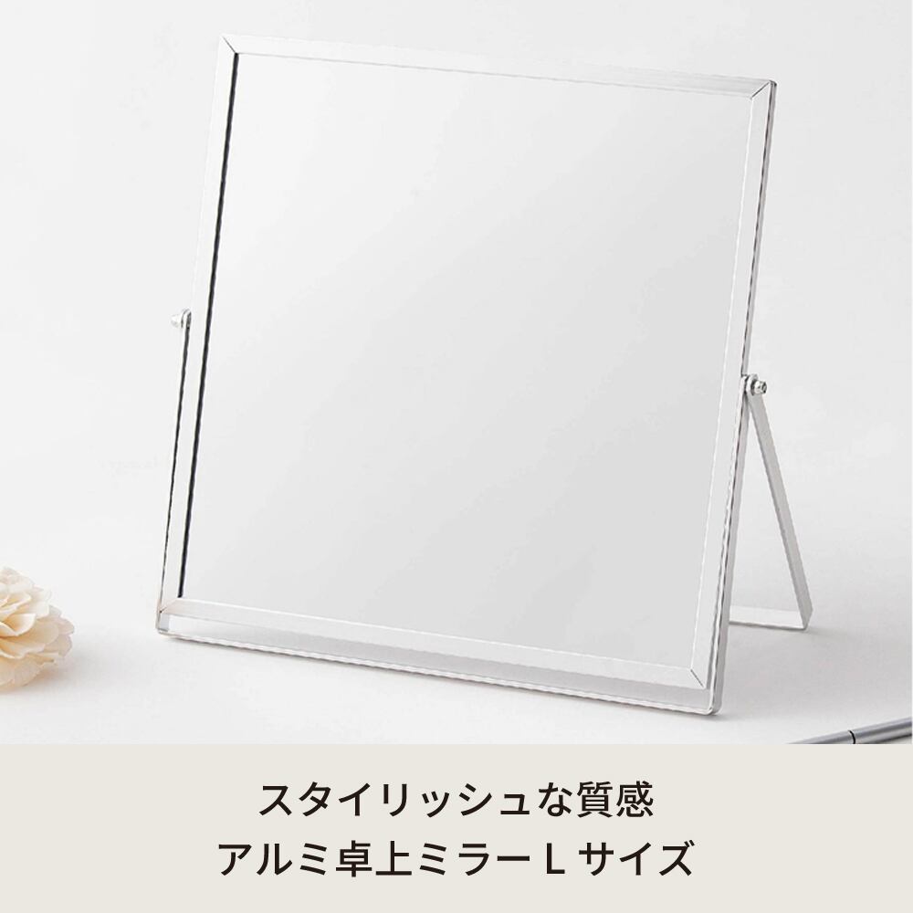 【Lサイズ】清潔感のあるアルミフレーム卓上ミラー 鏡 かがみ カガミ メイク