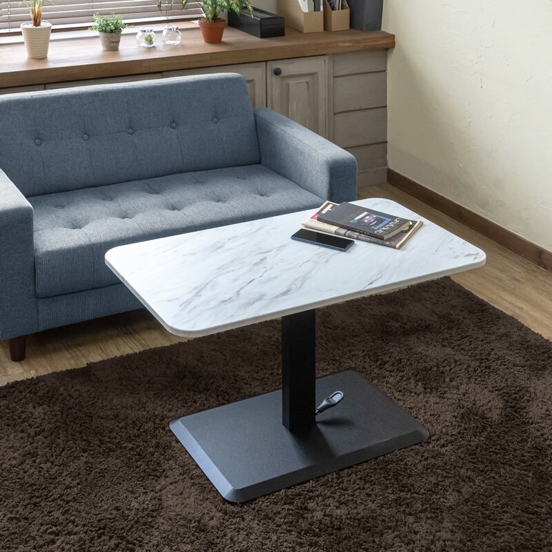 脚部のペダルで簡単に高さ調節ができる重厚感のある昇降式ダイニングテーブルです