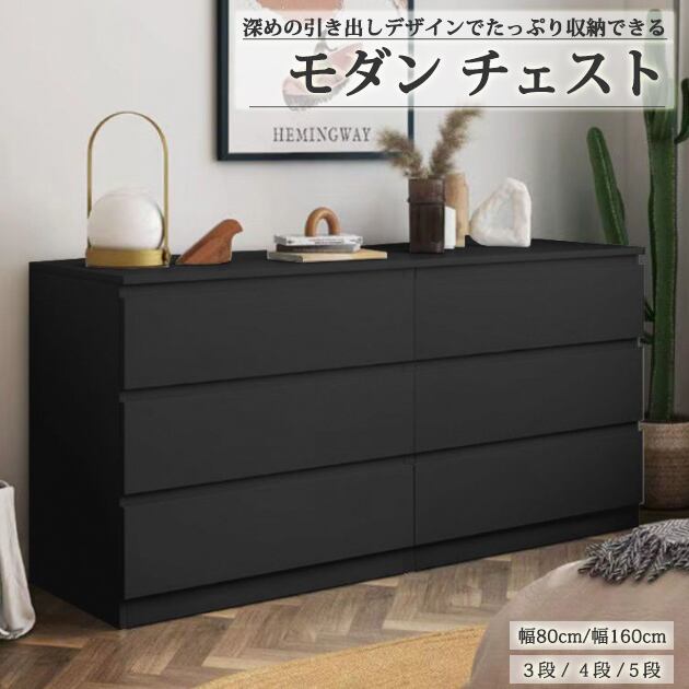 深めの引き出しデザインでたっぷり収納できる モダンチェスト