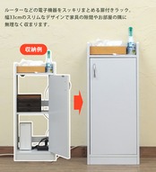 電話やルーターなどが1ヶ所に綺麗にまとまるスリムな収納ラックです