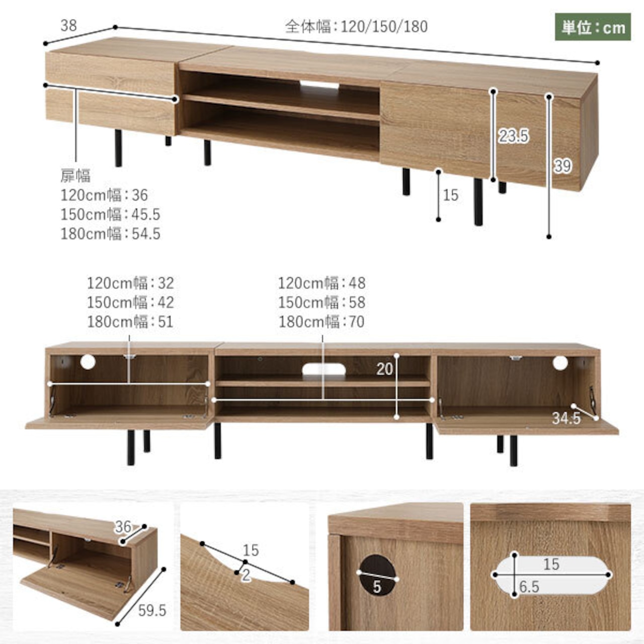 全体(外寸) :(約)幅120cm×奥行38cm×高さ39cm(脚高さ15cm)