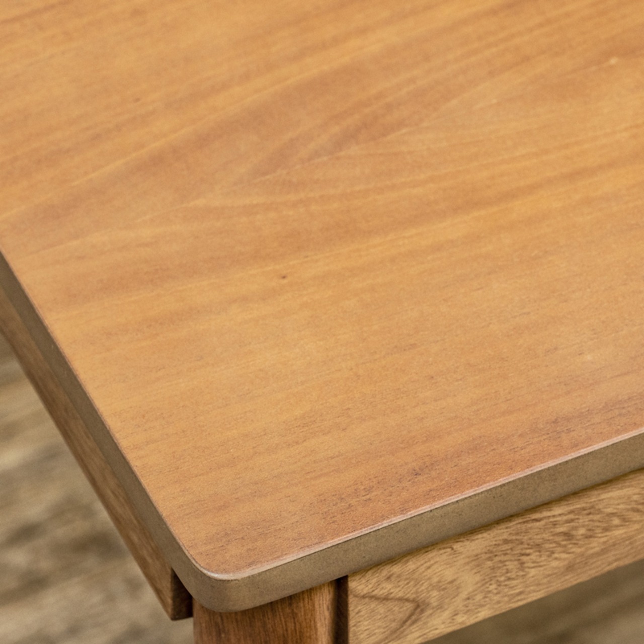 天板の角を丸く仕上げており、優しい風合いでお部屋の印象を柔らかくするデザインのダイニングテーブルです。